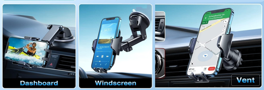 Secure your phone for navigation without blocking the view. This one was reviewed 23k times and has various ways you can use it. It has 4.5 stars.